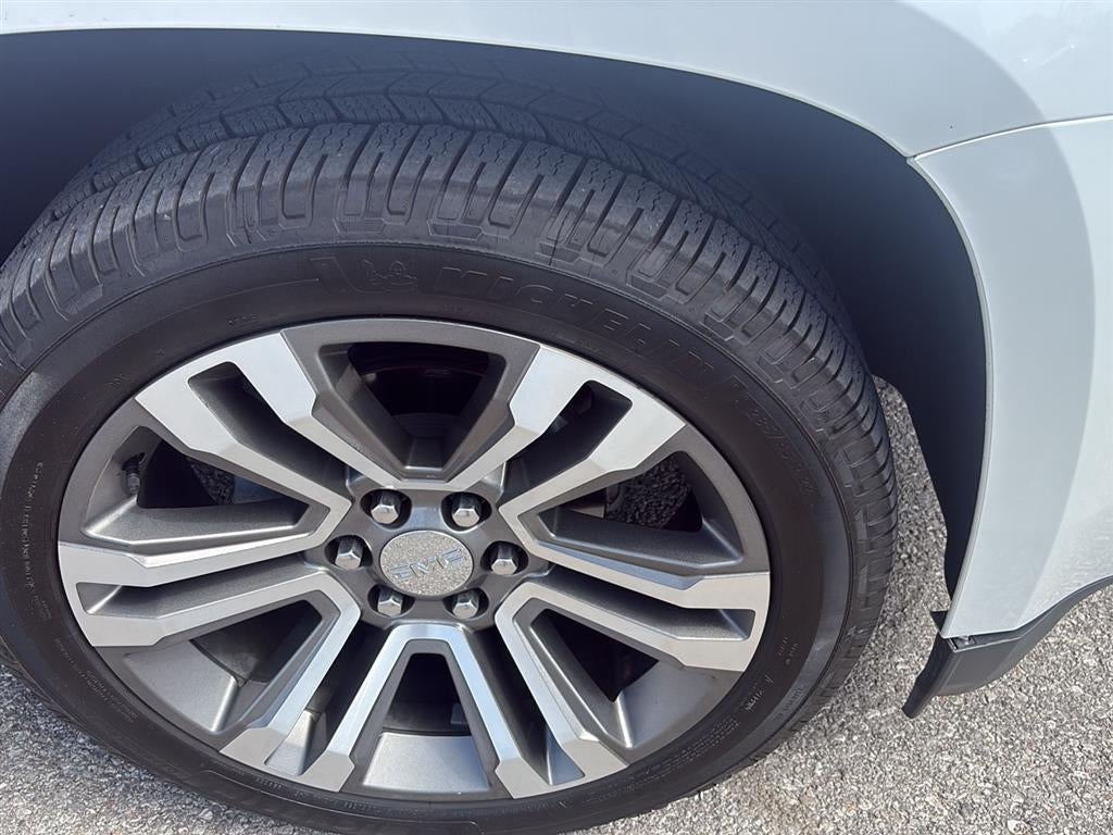 Engine, 6.2L EcoTec3 V8 with Active Fuel Management, Direct Injection and Variable Valve Timing, includes aluminum block construction (420 hp [313 kW] @ 5600 rpm, 460 lb-ft of torque [624 N-m] @ 4100 rpm), 4-wheel drive, Liftgate, power, hands free, Seats, heated second row, outboard positions, Safety Alert Seat, Steering wheel, heated, leather-wrapped, Brakes, Hill Start-Assist, Airbags, Frontal airbags for driver and front outboard passenger; Seat-mounted side-impact airbags for driver and front outboard passenger; Driver inboard seat-mounted side-impact airbag; Head-curtain airbags for all rows in outboard seating positions (Always use safety belts and child restraints. Children are safer when properly secured in a rear seat in the appropriate child restraint. See the Owner's Manual for more information.), Front outboard Passenger Sensing System for frontal outboard passenger airbag (Always use safety belts and child restraints. Children are safer when properly secured in a rear seat in the appropriate child restraint. See the Owner's Manual for more information.), LATCH system (Lower Anchors and Top tethers for Children), for child safety seats lower anchors and top tethers located in all second row seating positions, top tethers located in third row seating positions, Front and Rear Park Assist, Rear Cross-Traffic Alert, Rear Vision Camera, Lane Change Alert with Side Blind Zone Alert, Teen Driver mode a configurable feature that lets you activate customizable vehicle settings associated with a key fob, to encourage safe driving behavior. It can limit certain vehicle features, and it prevents certain safety systems from being turned off. An in-vehicle report gives you information on your teen's driving habits and helps you to continue to coach your new driver, Tire Pressure Monitoring System with Tire Fill Alert (does not apply to spare tire), GMC Connected Access with 10 years of standard connectivity which enables services such as, Vehicle Diagnostics, Dealer Maintenance Notification, GMC Smart Driver, Marketplace and more; EFFECTIVE WITH SALES STARTING 5/1/2018. (Included and only available with (UE1) OnStar. Limitations apply. Not transferable. Standard connectivity available to original purchaser for ten years from the date of initial vehicle purchase for model year 2018 or newer GMC vehicles. See onstar.com for details and further plan limitations. Connected Access does not include emergency or security services. Availability and additional services enabled by Connected Access are subject to change.)