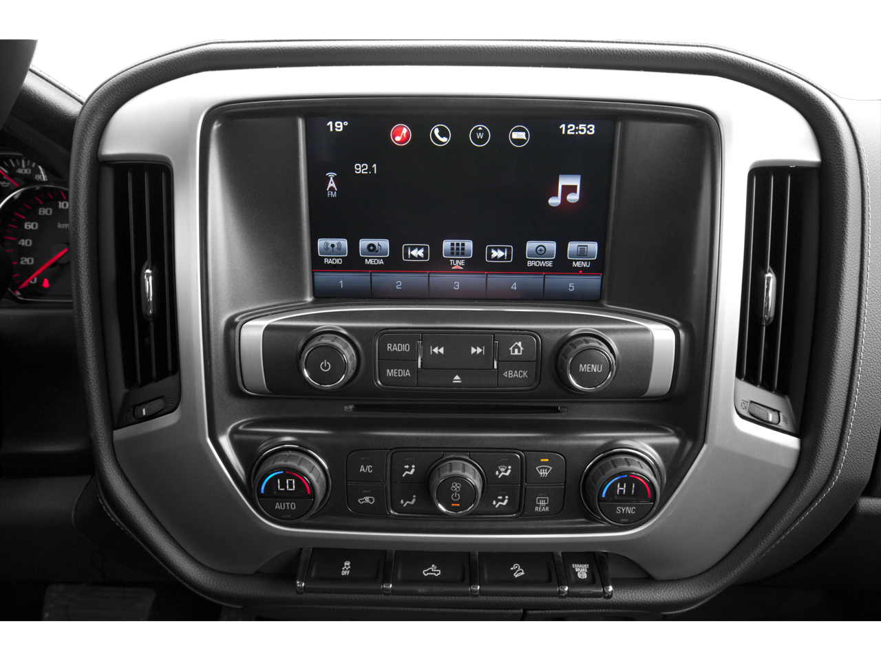 - The primary display in the vehicle offers touchscreen control.