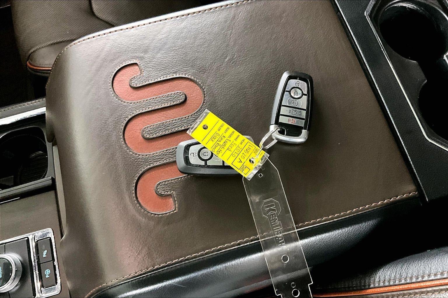 Wheels: 22"" 6-Spoke Painted Machined-Face Aluminum -inc: dark tarnish-painted pockets, King Ranch center cap and Continuously Controlled Damping (CCD), Power Tilt/Telescoping Steering Column, Heated Leather Steering Wheel, ADAPTIVE CRUISE CONTROL, Side Impact Beams, Dual Stage Driver And Passenger Seat-Mounted Side Airbags, Ford Co-Pilot360 - Blind Spot Information System (BLIS) Blind Spot, Ford Co-Pilot360 - Pre-Collision Assist with Automatic Emergency Braking (AEB), Ford Co-Pilot360 - Cross-Traffic Alert, Collision Mitigation-Front, Driver Monitoring-Alert, Enhanced Active Park Assist Front And Rear Parking Sensors, Aerial View Camera System, Tire Specific Low Tire Pressure Warning, Dual Stage Driver And Passenger Front Airbags, Safety Canopy System Curtain 1st, 2nd And 3rd Row Airbags, Airbag Occupancy Sensor, Mykey System -inc: Top Speed Limiter, Audio Volume Limiter, Early Low Fuel Warning, Programmable Sound Chimes and Beltminder w/Audio Mute, Outboard Front Lap And Shoulder Safety Belts -inc: Height Adjusters and Pretensioners, Back-Up Camera w/Washer, Front Camera w/Washer, Left Side Camera, Right Side Camera