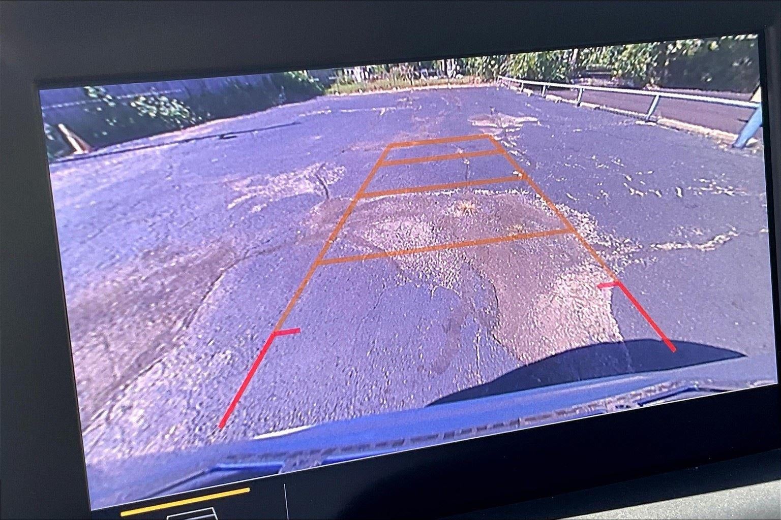- The vehicle is equipped with a camera that displays an image of the area behind the vehicle on an interior display.