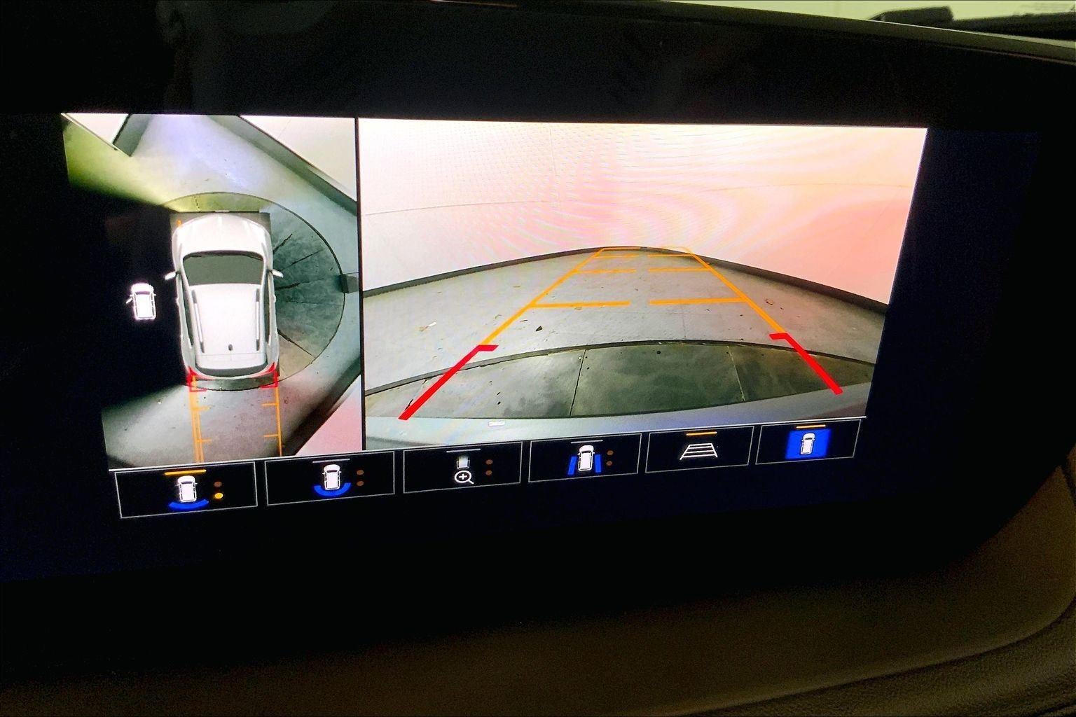 - The vehicle is equipped with a camera that displays an image of the area behind the vehicle on an interior display.