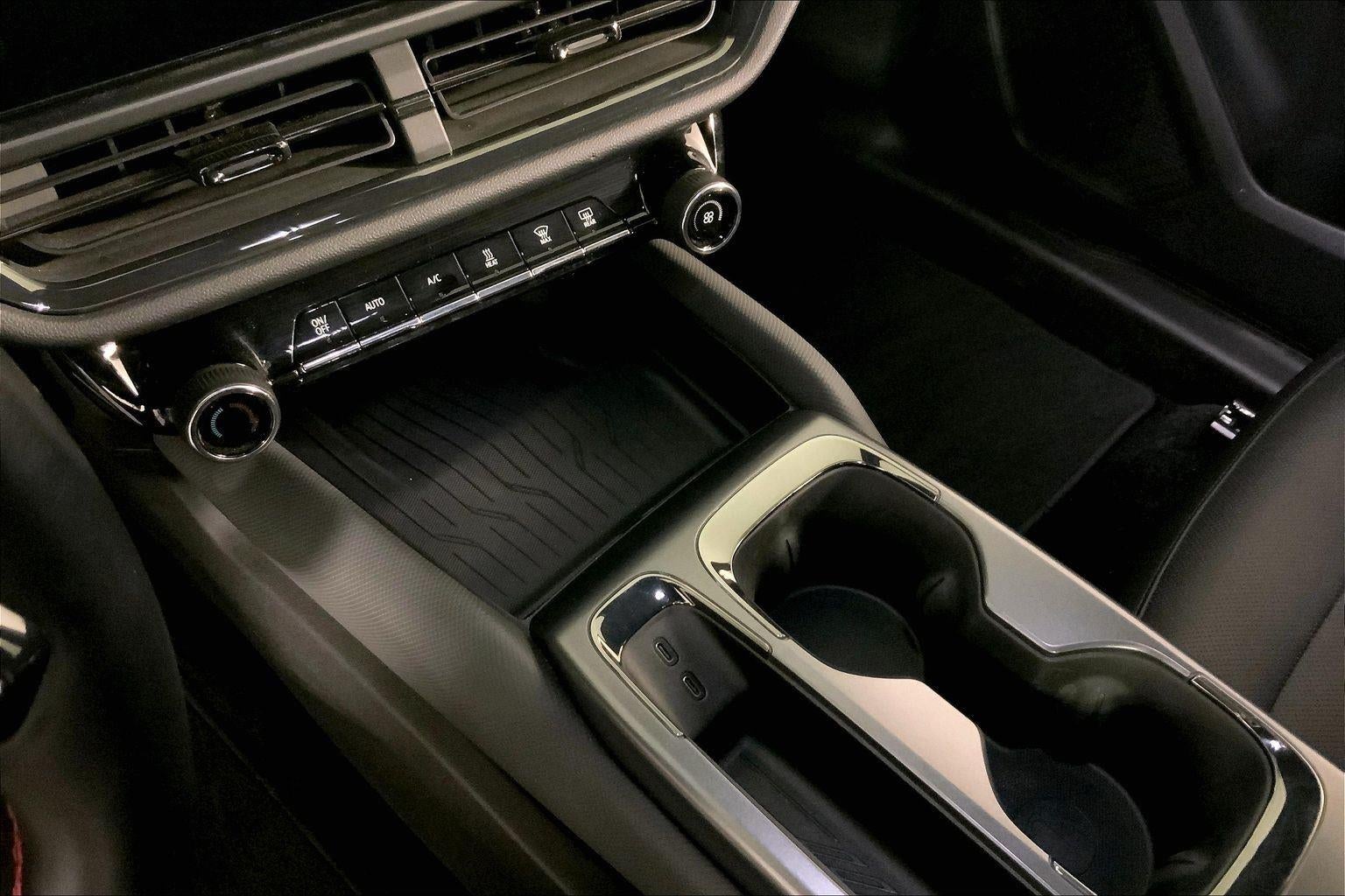 - USB ports, 2 type-C, located in front center stack storage area, data and charge