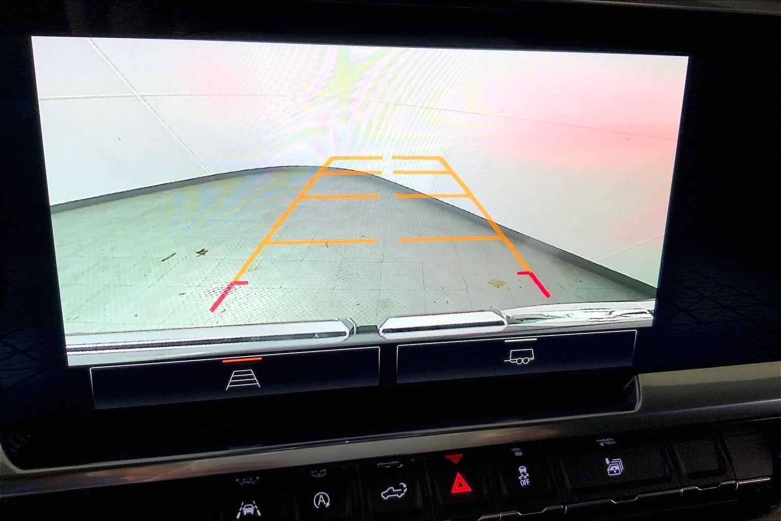 - The vehicle is equipped with a camera that displays an image of the area behind the vehicle on an interior display.