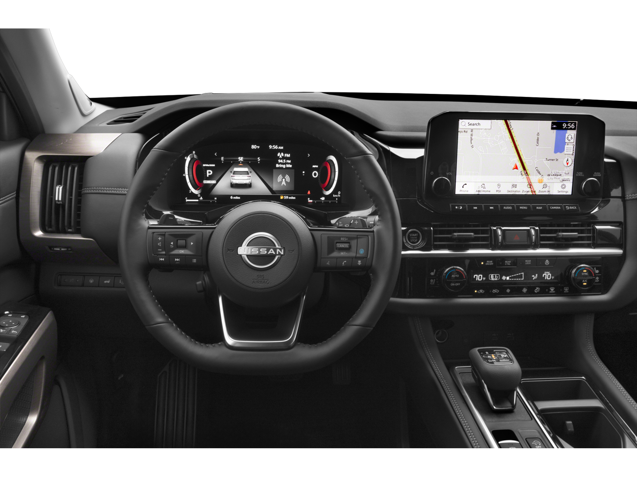 Power Liftgate Rear Cargo Access, Power Tilt/Telescoping Steering Column, Heated Leather Steering Wheel w/Auto Tilt-Away, NissanConnect Services Tracker System, NissanConnect w/Navigation & Services -inc: door to door connected navigation w/3D building graphics, satellite imagery, online POI search, online premium traffic information and SiriusXM Traffic and Travel Link w/weather, fuel prices, movie listings, stock info, sports and parking, Head-Up Display, Immobilizer, Side Impact Beams, Collision Mitigation-Front, Driver Monitoring-Alert, Blind Spot Intervention (BSI) / Blind Spot Warning (BSW) Blind Spot, Front And Rear Parking Sensors, Aerial View Camera System, Tire Pressure Monitoring System Tire Specific Low Tire Pressure Warning, Dual Stage Driver And Passenger Front Airbags, Curtain 1st, 2nd And 3rd Row Airbags, Airbag Occupancy Sensor, Back-Up Camera, Front Camera, Left Side Camera, Right Side Camera