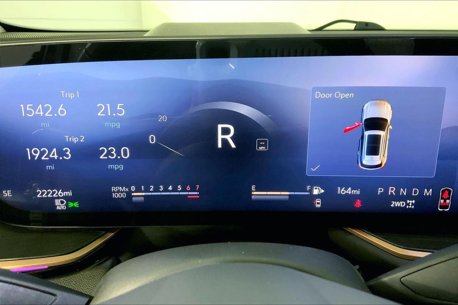 - The vehicle is equipped with a camera that displays an image of the area behind the vehicle on an interior display.