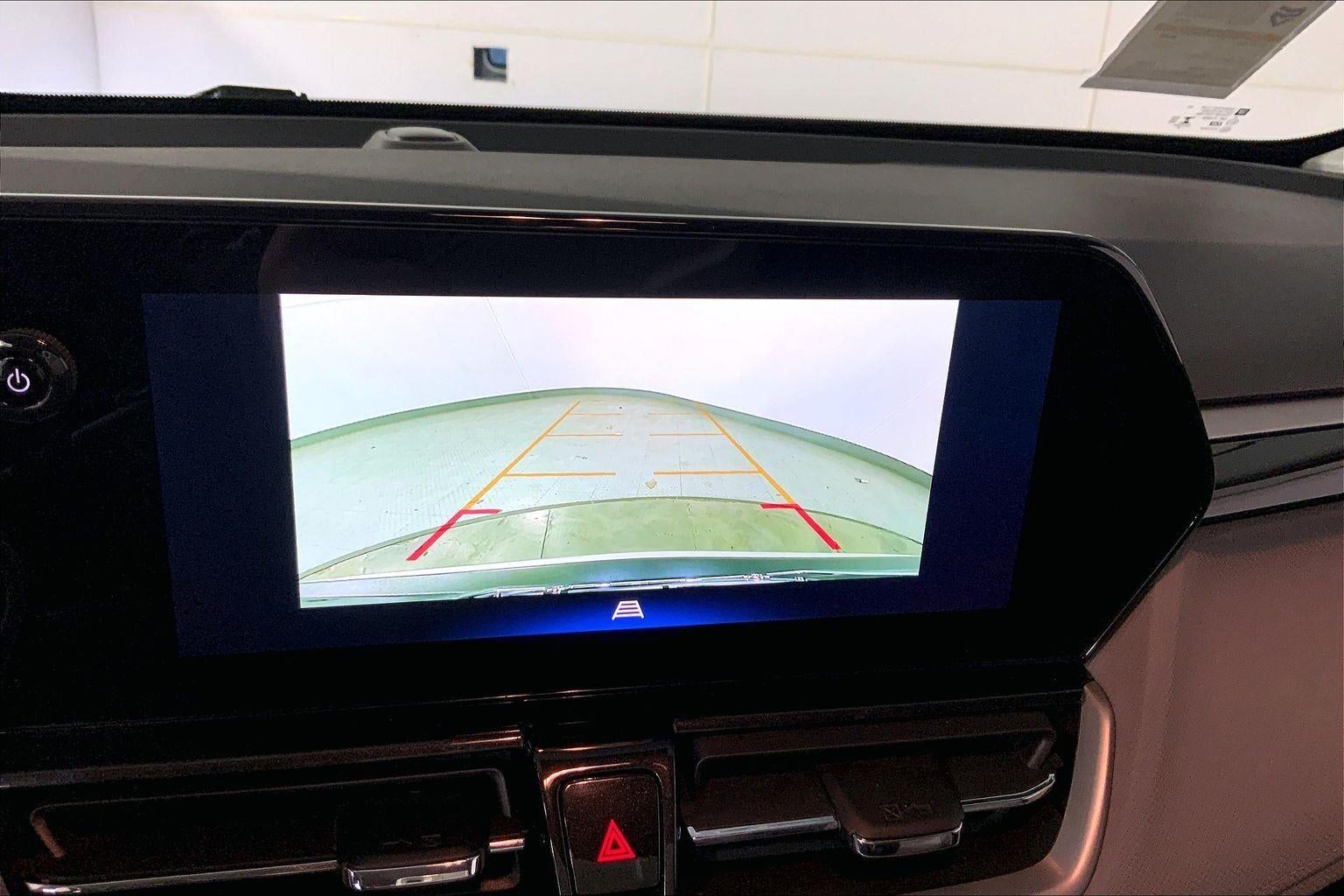 - The vehicle is equipped with a camera that displays an image of the area behind the vehicle on an interior display.