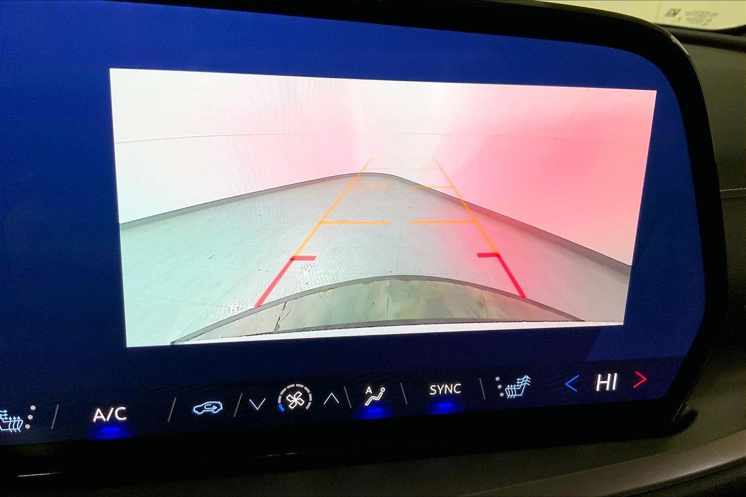 - The vehicle is equipped with a camera that displays an image of the area behind the vehicle on an interior display. The camera is equipped with its own washer.