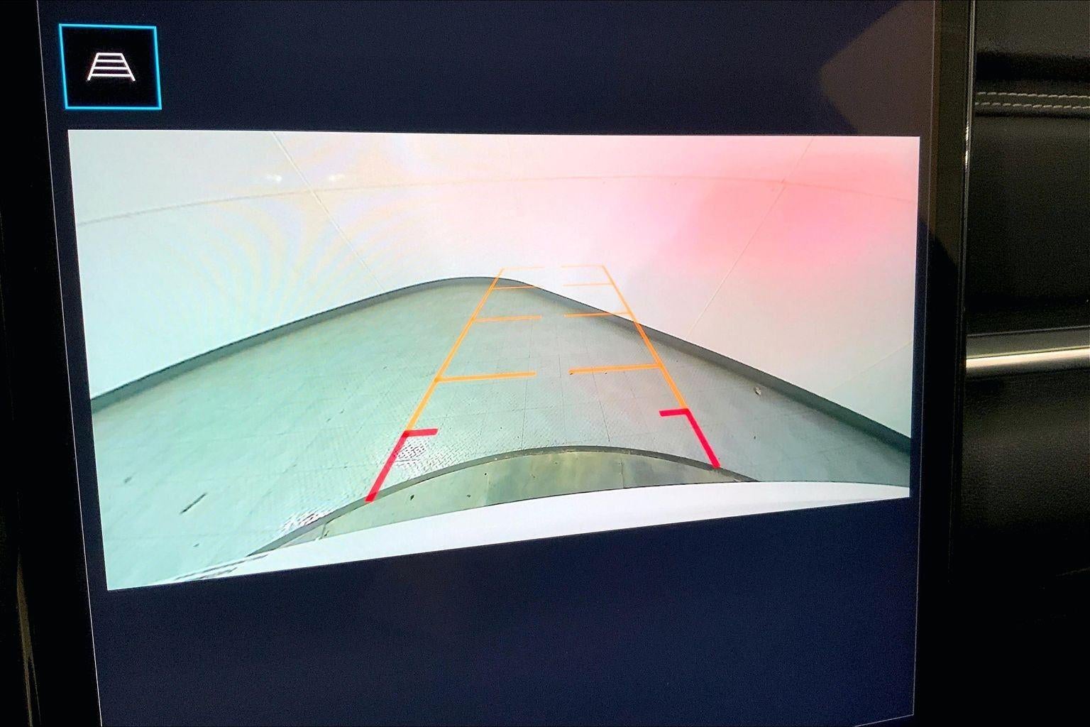 - The vehicle is equipped with a camera that displays an image of the area behind the vehicle on an interior display.
