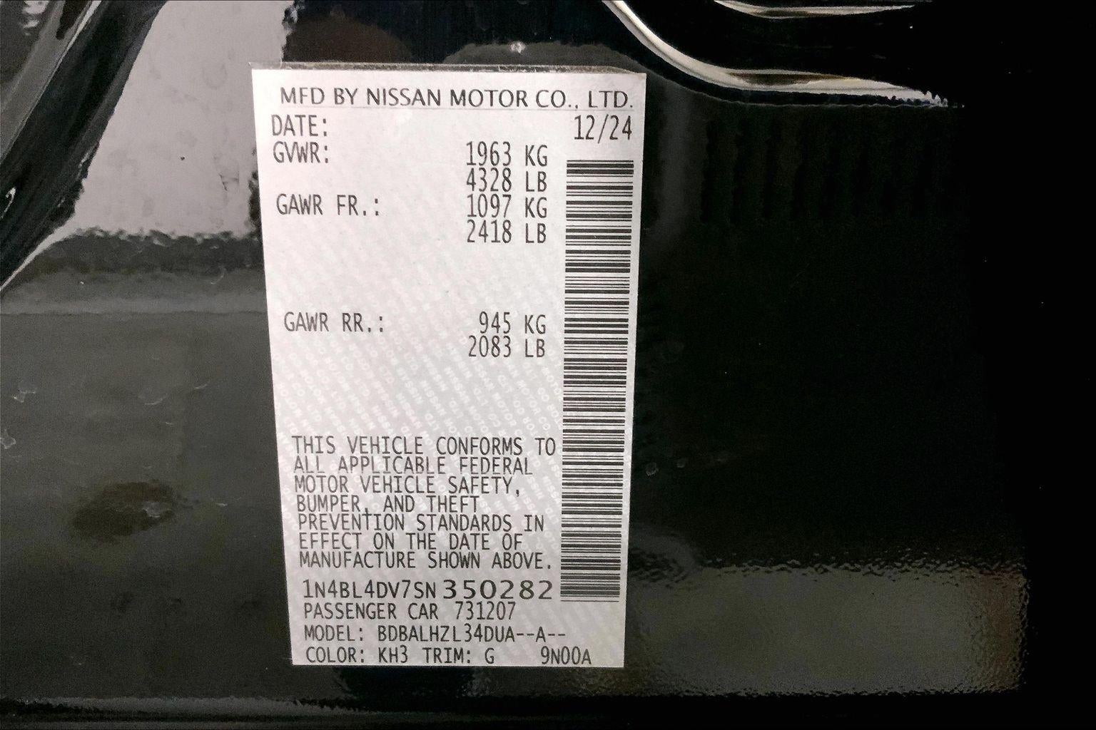 SUPER BLACK, CHARCOAL, CLOTH SEAT TRIM, [C03] 50 STATE EMISSIONS, [H01] NISSANCONNECT SERVICES POWERED BY SIRIUSXM, [L94] FLOOR MATS/TRUNK MAT/HIDEAWAY NET